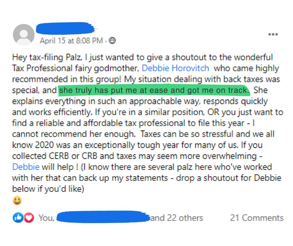 - Debbie is a kind and empathetic leader who's passionate about helping people who are behind on their taxes to get caught up, and develop a sense of ownership and confidence in their money management, and their relationship with the CRA, and personal/business opportunities